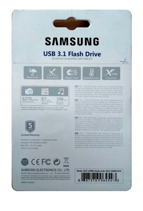 SAMSUNG BAR Plus 256 GB, USB 3.1 flash stick, brzina 300 MB/s.
