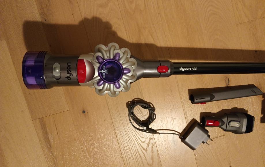 Dyson V8 bežični usisavači osnaženi su najnovijim Dyson digitalnim V8 motorom i učinkovitijom Nikal-Kobalt-Aluminijskom baterijom stvarajući veću usisnu snagu i duže vrijeme rada. Imaju veći spremnik za prašinu s novim higijenskim mehanizmom za pražnjenje te su akustički dorađeni kako bi bili 50% tiši.