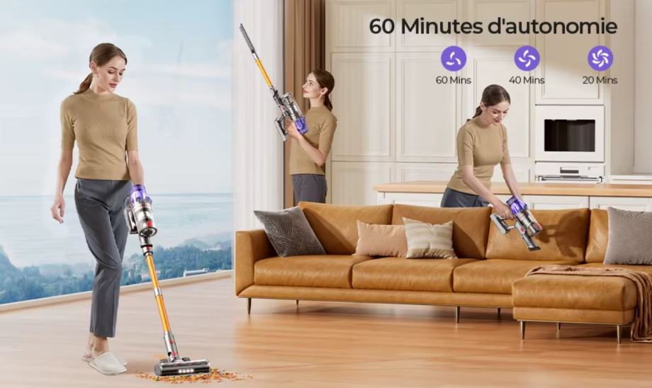 Autonomija od 55 minuta i uklonjiva baterija Ovaj moćni usisavač traje do 55 minuta u načinu rada od 15 KPA. Baterija se može izvaditi i zasebno puniti u bilo kojem trenutku. Moguće je kupiti i dodatne baterije za produženje trajanja baterije.