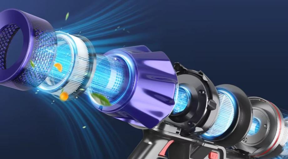 7-slojna visokoučinkovita filtracija i veliki kapacitet od 1,2 Osim konvencionalnog filtracijskog sloja, usisavač Plus dodaje HEPA filtar na izlazu iz motora, prašina i prljavština blokiraju se u velikom spremniku za prašinu od 1,2 l, a oslobađa se još čistiji zrak.