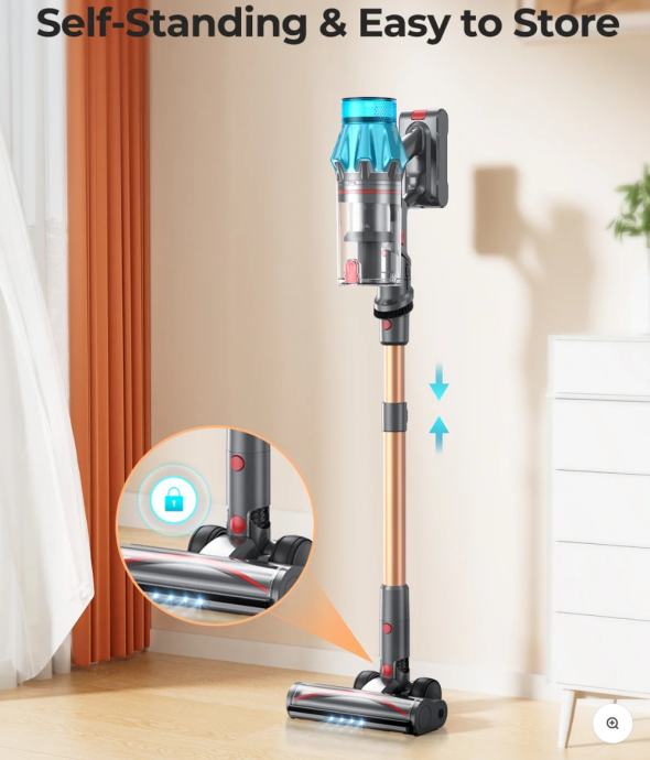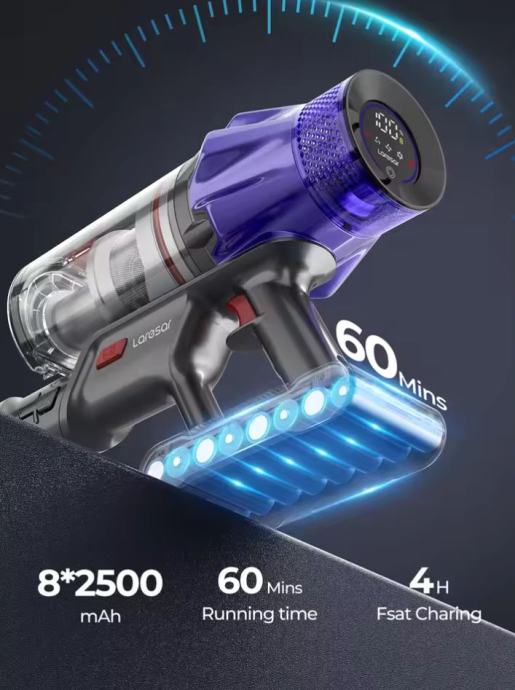 Pametni zaslon osjetljiv na dodir i podsjetnik za blokadu - Veliki LED zaslon prikazuje razinu baterije u stvarnom vremenu, a snaga vakuuma može se proizvoljno prilagoditi povlačenjem šipke vakuuma. Usisavač također ima funkciju detekcije blokiranja. Čim se izazove blokada