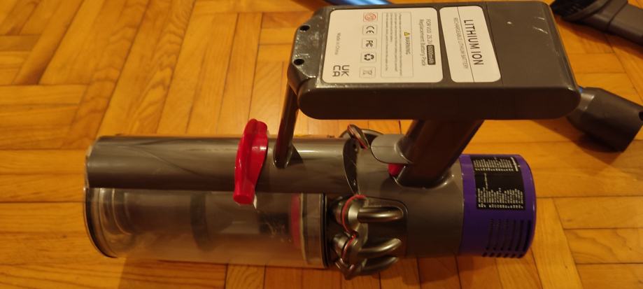 Prodajem super očuvan i potpuno ispravan usisavač Dyson , radi odlično jer ima novu litij ion bateriju sa duplo većim kapacitetom od tvorničke a inače su im jedini problem te originalne baterije koje odlaze , pa puno ljudi tvrdi da su namjerno programirane da se pokvare što me iskreno i ne bi previše čudilo jer je neobično da baš sve riknu nakon otprilike istog vremena i to ne sami ulošci nego elektronika . Nebitno sada , uglavnom uređaj je u savršenom stanju , ima 3 brzine tj. snage usisavanja , u prvoj brzini vuče preko sat vremena , ne znam točno koliko jer ne možeš dočekati da stane , čist je i uredan , bez neugodnih mirisa , na priključcima rade i motori i svjetla , filteri uredni , ima originalni punjač i vrijedi te novce s obzirom na cijenu novoga i novu bateriju . Moguća dostava za Zg . Za više info nazovite . Hvala .