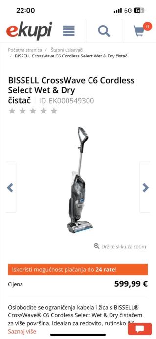 BISSELL; CrossWave C6 Cordless Select Wet & Dry čistačem za više površina.