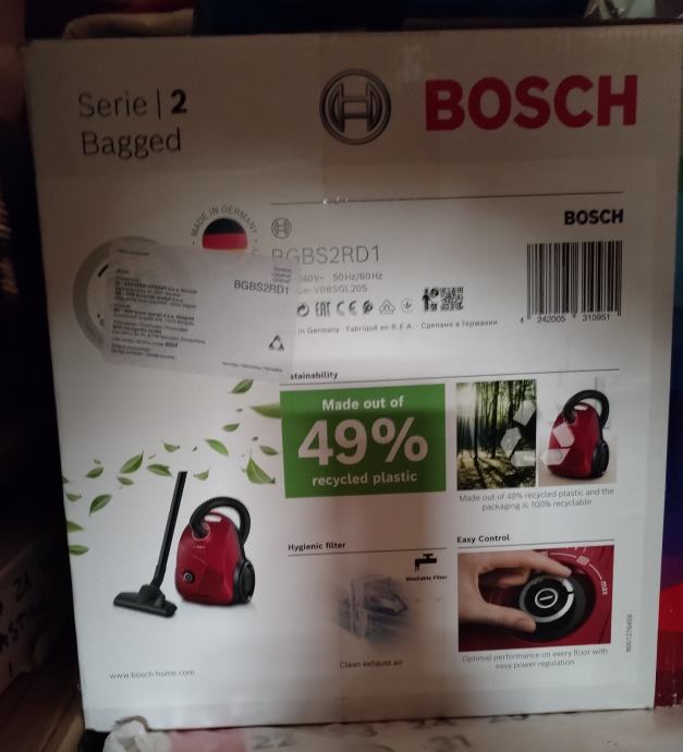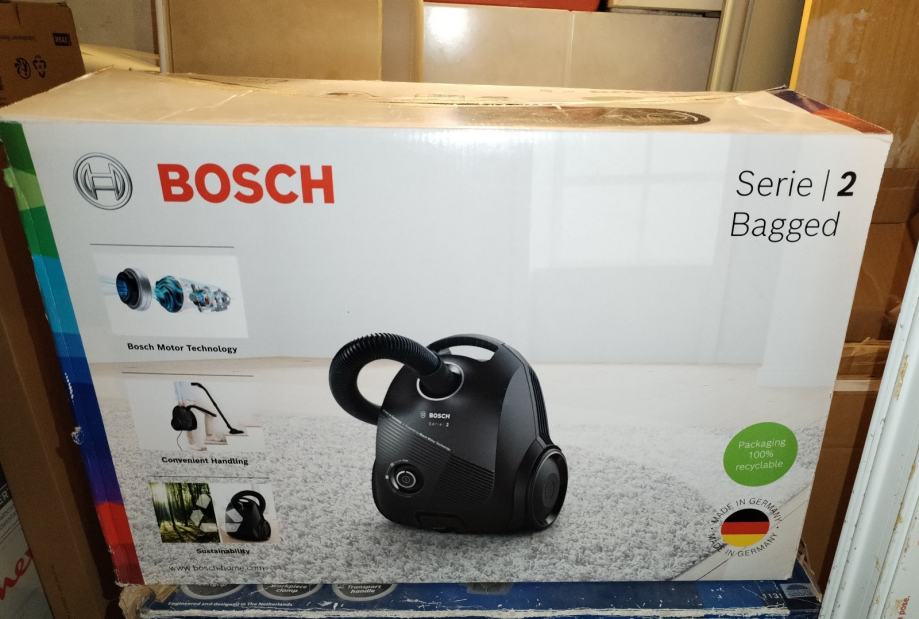 Prodajem potpuno novi Bosch usisavač serije 2 Bagged u originalnom pakiranju. Uređaj dolazi sa svim potrebnim nastavcima i izrađen je od 49% recikliranog plastičnog materijala. Idealan je za svakodnevno čišćenje zahvaljujući higijenskom filteru i jednostavnoj kontroli snage. PRODAJE se jer je supruga dobila bolji kao poklon za rođendan.