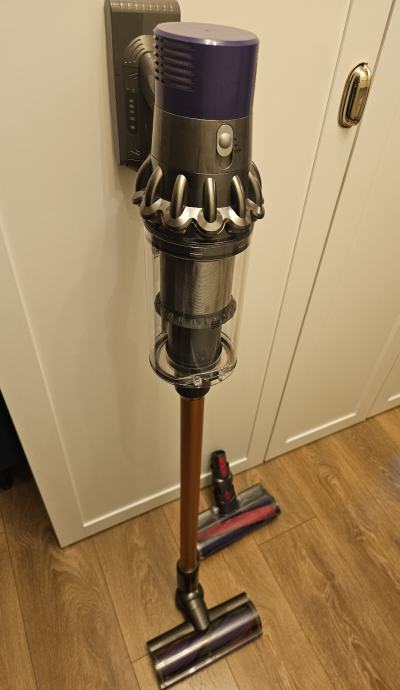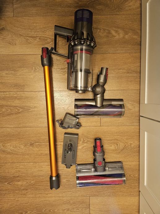 Dyson V10 usisivač, korišten, ali u potpunosti ispravan. Od dodataka dolazi s dvije glave. Kupljena je i nova baterija s većim kapacitetom od originalne od 3Ah.