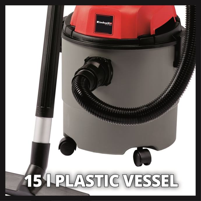 TH-VC 1815 višenamjenski je usisavač namijenjen čišćenju grubih, finih i suhih ili mokrih površina bez ikakvih problema. Usisavač suho/mokro se kod usisa vode pomoću zaštitnog plutajućeg prekidača automatski isključuje.
