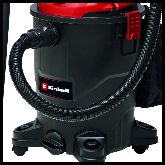 Einhell usisavač suho/mokro TC-VC 1930 A je alat od 1500 W za zadatke temeljitog čišćenja. Suho/mokro usisavač pruža pažljivu uslugu na svim površinama, tepisima ili drugim tekstilima ili pločicama. Unutrašnjost motornih vozila također se može čistiti suho/mokro usisavačem, bilo da se radi o sjedalima, tepisima ili oblogama. Suho/mokro usisavač Einhell opremljen je čvrstom plastičnom posudom kapaciteta 30 litara. Za jednostavno pražnjenje posude integriran je vijak za odvod vode. Sustav crijeva Ø 36 mm osigurava visoku razinu protoka zraka i prljavštine. Priključak za puhanje služi za ispuhivanje teško dostupnih mjesta, npr. u zakutcima ili iza čvrstih ormara. Četiri okretna kotačića i integrirana ručka za nošenje osiguravaju jednostavan transport i fleksibilnost u radu. Osim toga, u kućište je integrirana automatska utičnica na koju se mogu priključiti električni alati. Ako se priključeni alat sada uključi ili isključi, suho/mokro usisavač također će se automatski uključiti ili isključiti. Olakšan transport uz praktični držač crijeva i kabela na kućištu. Isporuka uključuje usisno crijevo od 2,50 m, kombinirani nastavak s kotačićima za tepihe i glatke podove i uski nastavak. Osim toga, isporučeni pjenasti i dugotrajni filtri osiguravaju trenutačan rad.