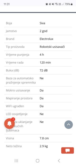Prodajem Electrolux 600 Robotic ER61UW1DG robotski usisavač, kupljen u lipnju 2024. godine. Korišten je dva puta, kao nov je. Nalazi se u originalnoj ambalaži i s računom. Može i ribati podove. Cijena je bila 523 eura, kupljen je na popustu za 419 eura.