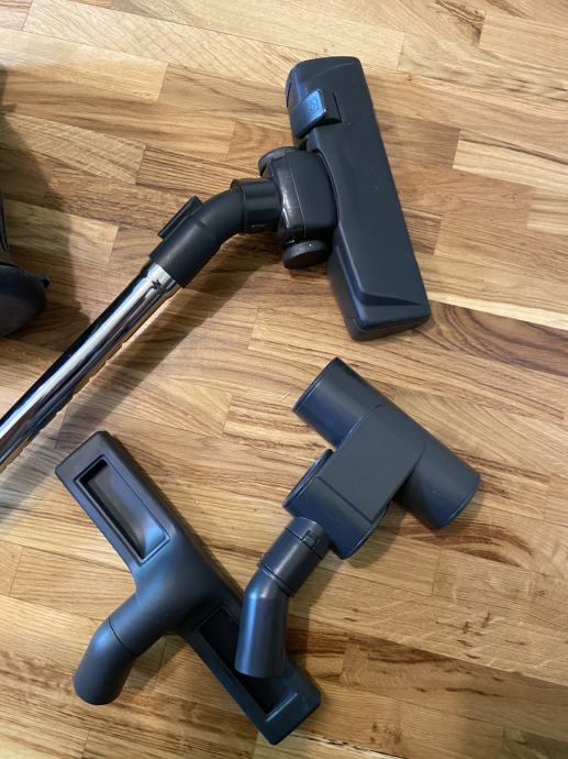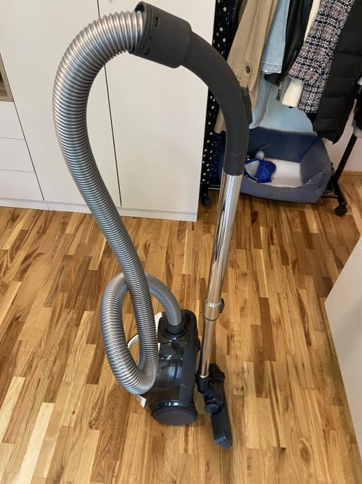 Usisavač ima spremnik za prljavštinu koji se prazni te dodaci za usisavanje vidljivi na slikama nisu nikad korišteni.
