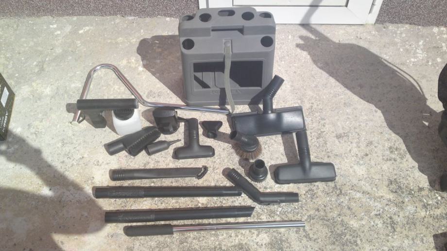 Uz usisivač nalazi se i pribor: Sustav za šamponiranje, Kom 1, Sustav za poliranje, Kom. 1, Filter vrećice G 6/1 hepa, Kom. 9, Šampon za tepihe 946 ml. Kom. 1, Komplet za hitnu njegu tepiha, Pak. 1.