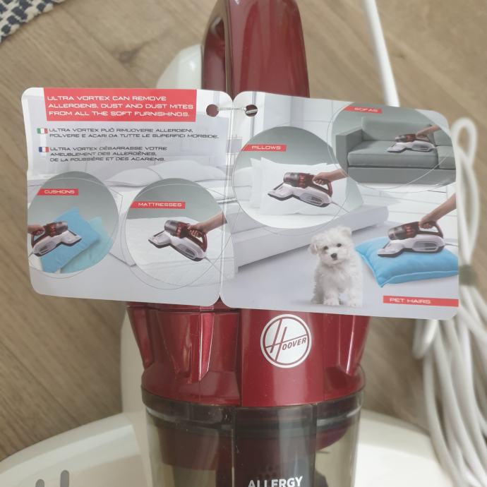 Prodajem Hooverov ručni usisavač koji uklanja alergeni, prašinu i grinje sa mekanog namještaja.