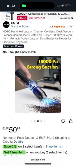 Na amazonu košta 50€ + 30€ postarina i ceka se 15 dana. Ja ga prodajem samo za 50€ i dostava besplatna. Usisavac je bas tezak i cvrst. Nije kinesko smece.