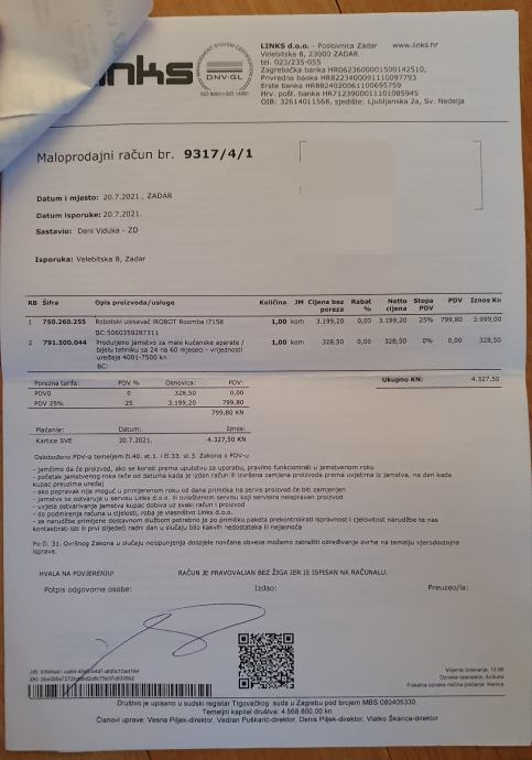 Prodajem usisivač u naslovu. Potpuno ispravan. Kupljen u Linksu 20.7.2021.g sa produženom garancijom na 5 godina. Razlog prodaje je taj što imamo malog puzavca i brdo razbacanih igračaka po podu pa nam roomba više nema smisla jer treba sve sklanjat. Prvi kontakt molim bilo kojim putem osim poziva jer na nepoznate brojeve se ne javljam. Drugim kanalima ću vidjet razlog javljanja pa lako i ja nazovem vas ako treba.
