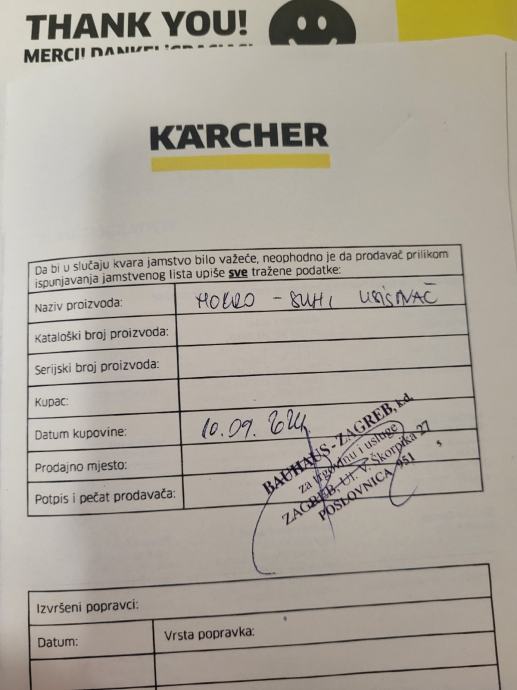 Karcher ima 5 godina garanciju, a kupljen je 10.09.2024. godine