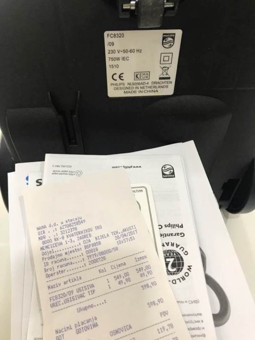 Prodajemo navedeni usisavač, kupljen 20.04.2017.