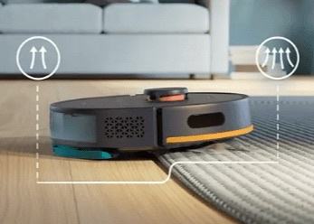 Robot automatski povećava usisnu snagu kada se vozi po tepihu kako bi uhvatio fine čestice prašine skrivene duboko u tepihu.
