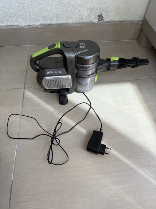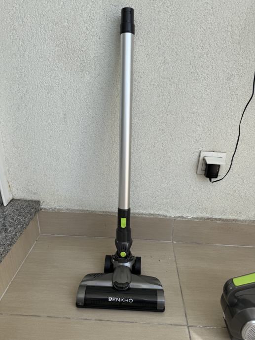 Prodajem ENKHO bežični usisivač. Sadrži motoriziranu četku sa svjetlom i rotacijom od 180°, spremnik od 0,5 L s perivim HEPA filterom, vrijeme punjenja: 5-7 sati, autonomija rada 30 minuta, 21,6 litij-ionska baterija, 2200 mAh, snaga: 120 W.
