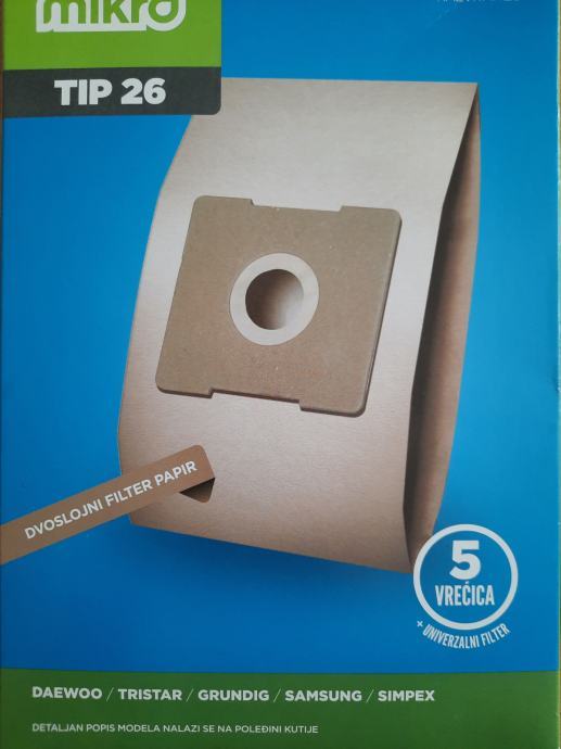 Razvitak Zg mikro vrećice za usisavače TIP: 26 5/1, 5 + 2 vrećice ostale iz drugog pakiranja (ukupno 7 vrećica).