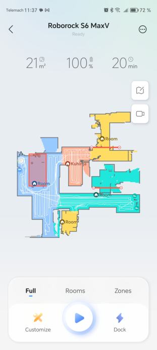 Korišten, u ispravnom stanju. Skine se aplikacija i sve postavke se tamo namještaju. Ima kameru te se direktno vidi na aplikaciji kuda se kreće. Super je ako imate kućne ljubimce malo zaviriti u njihov svijet dok niste kod kuće. Usisava i briše podove.