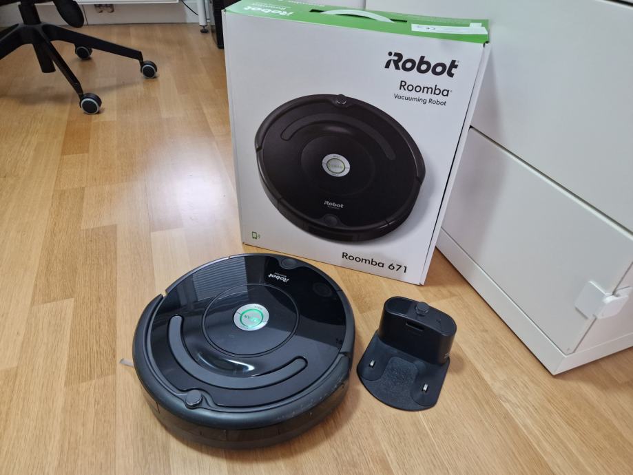 Prodajem robotski usisavač Roomba 671. Potpuno je ispravan, a ima manje kozmetičke tragove korištenja vidljivim na slikama. Usisavač je povremeno korišten u stanu i prodaje se pošto je zamijenjen sa robotskim usisavačem koji može i oprati pod.