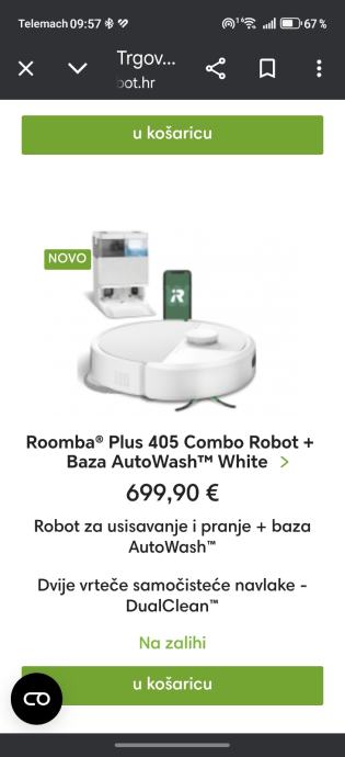 Prodaje se navedeni Robot Roomba plus 405 combo u savršenom stanju pus dodana oprema za njega kupljen 25.11.2025 u arena centru podgarancijom još 23mj radi savršeno prezadovoljan ali odlučili na jači model zato se prodaje ovaj cjena 400€