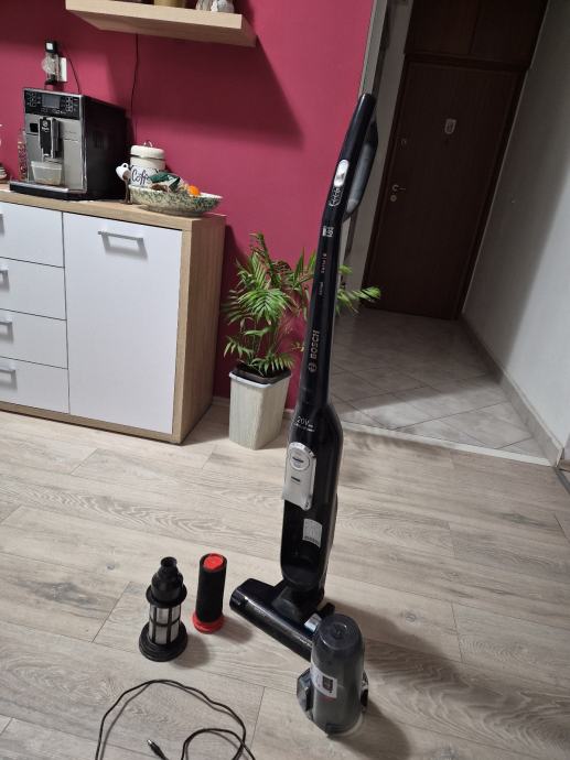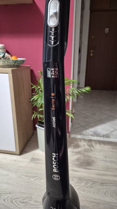 Prodajem rabljeni štapni usisavač Bosch Athlet Serie 6 u plavo-crnoj boji. Radi se o bežičnom modelu s vremenom rada do 45 minuta na jednom punjenju. Uz usisavač dolazi punjač -sve je vidljivo na fotografijama.