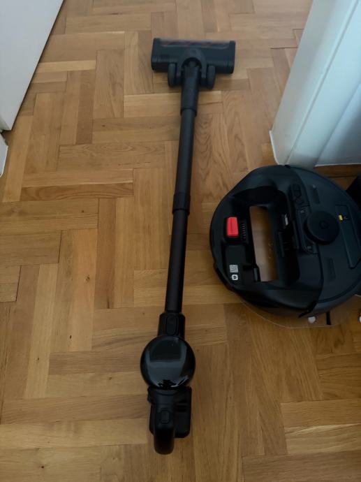 Prodajem Eufy bežični usisavač 3 u 1 s baznom stanicom za punjenje i pražnjenje. Radi se o praktičnom uređaju koji omogućava klasično usisavanje, ručno čišćenje s odvojivom jedinicom te automatsko pražnjenje prašine u veću baznu stanicu. Snaga usisavanja iznosi 30000 Pa, što osigurava učinkovito čišćenje različitih površina.