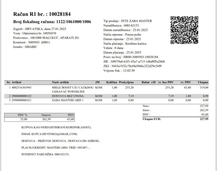 Usisavač je u potpuno funkcionalnom stanju, dolazi s originalnim računom i dokumentacijom.