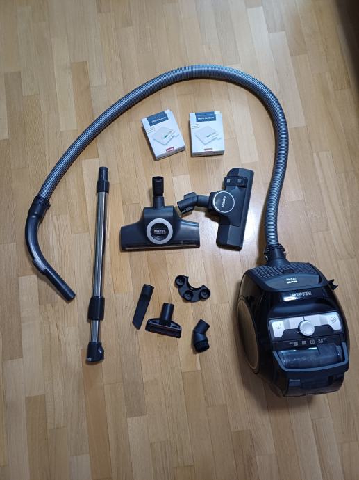Uz uređaj dolaze sve nastavke i dodatna oprema - Turbo četka za dlake životinja, parketnajza, uska mlaznica, produžne cijevi i druga priključna oprema. Uz usisavač su dva nova Miele AirClean Plus hepa filtera.