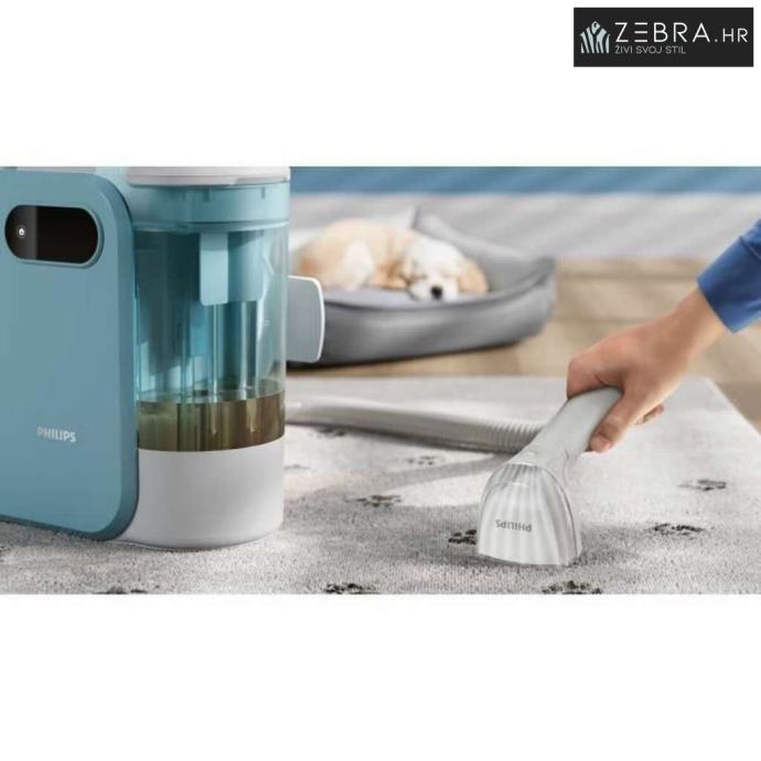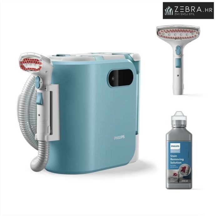 Philips usisavač je uređaj dizajniran za učinkovito čišćenje različitih tekstilnih površina, s praktičnim i funkcionalnim pristupom. Ima kapacitet od 1,6 litara koji omogućuje pohranu znatne količine prljavštine, što olakšava duže sesije čišćenja bez potrebe za čestim pražnjenjem spremnika. Njegov izvor napajanja putem 5-metarskog električnog kabela jamči neprekidno korištenje bez uobičajenih prekida kod punjivih baterija, nudeći razumnu slobodu kretanja bez ovisnosti o čestim točkama za punjenje. Među tehničkim značajkama ističe se fleksibilna cijev koja olakšava pristup teško dostupnim kutovima i pruža ugodniju ergonomiju tijekom upotrebe. Izvlačivi spremnik za vodu olakšava čišćenje i održavanje uređaja, pomažući u očuvanju dobrog stanja usisavača tijekom vremena. Dizajn uključuje sustav za pohranu kabela koji drži kabel urednim i smanjuje rizik od zapetljavanja ili nezgoda kada se ne koristi. Unatoč snazi, komplet teži 5,3 kg, što je uravnotežena težina koja osigurava stabilnost i upravljivost u različitim prostorima doma ili radnog mjesta. Ovaj Philips usisavač posebno je namijenjen korisnicima kojima treba robusno i praktično rješenje za dubinsko uklanjanje mrlja i prašine s tekstilnih površina, uz široku četku koja poboljšava učinkovitost prikupljanja prljavštine. S ovim značajkama pozicionira se kao proizvod koji kombinira kapacitet, udobnost i trajnost za održavanje različitih tkanina u optimalnim uvjetima čišćenja bez komplikacija.
