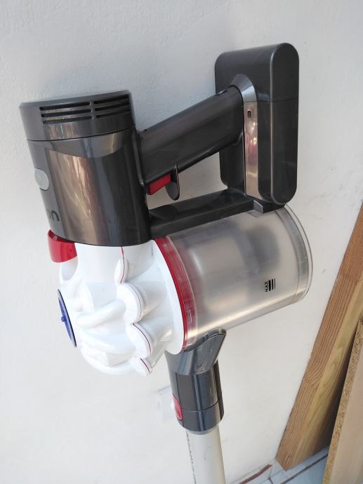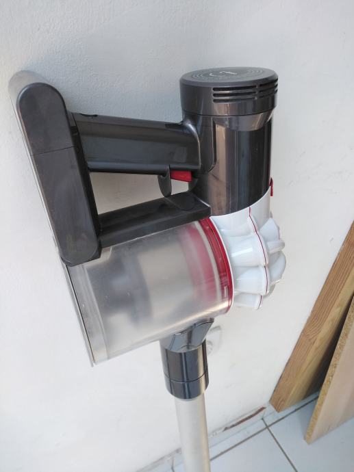 Uz usisavač idu usisni elementi i punjač baterije. Motor radi ali kratko. Vjerojatno potrebna nova baterija.