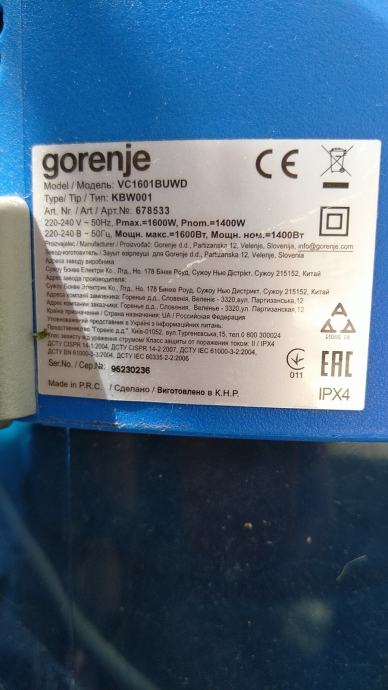 Usisivač GORENJE WATER DRY , vodeni filter prodajem za 45 E