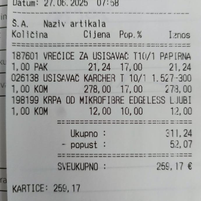 Usisivač Karcher T 10/1 NOVI, ZAPAKIRAN sa računom i garancijom !!!