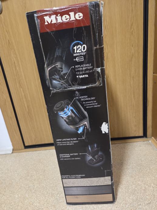 Povoljno prodajem Miele trifle3x hx1 pro naj jači model. Aparat je sačuvan kao nov u tvorničkoj kutiji. Aparat se može koristiti na tri razna načina prema potrebi. Glavna četka im led svijetlo za otkrivanje nevidljive prašine. Uz aparat dolaze tri nastavka za kutove, namještaj i osjetljive površine. Uz aparat dolaze dvije baterije kao i dva punjača tako da aparat možete koristiti cca 110 minuta. dolazi i zidni nosač. Posebno poklanjam široku četku veličine 40 cm ( Miele )dodatna oprema.
