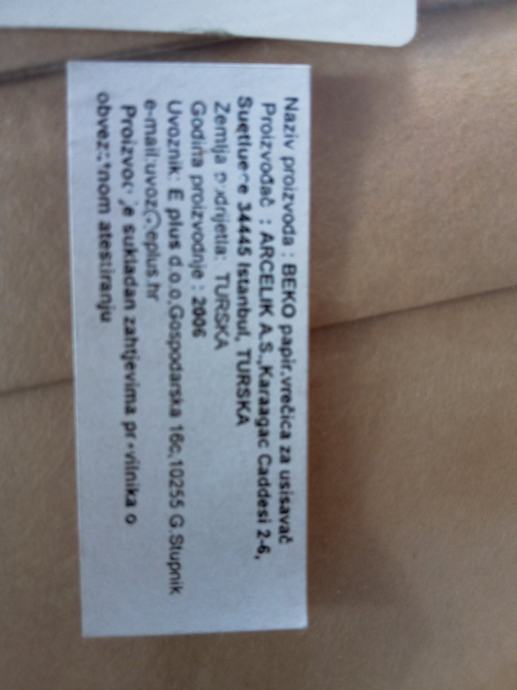 Beko- papirnata vrećica (vidi sliku) 4 eura