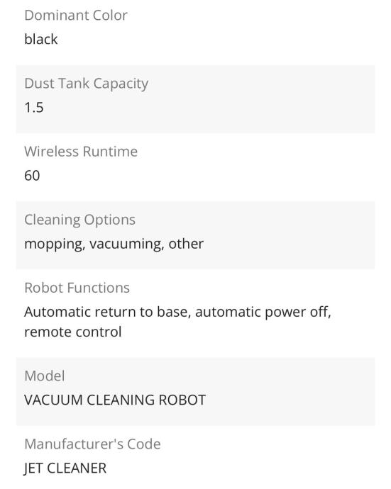Prodajemo originalnog robota usisavača od firme Welmax. Robot je korišten svega par puta i to isključivo funkcija usisavanja, kao i komponente koje pripadaju toj funkciji. Dakle, sve ostale komponente u pakiranju su potpuno nove i netaknute (uključujući i one za mokro/suho brisanje podova). Ima HEPA filter koji sasvim dobro izgleda i još se može koristiti s obzirom da robot nije često korišten. Robot je detaljno očišćen i korištene četke također, koje su u odličnom stanju. U originalnom je pakiranju sa svim pripadajućim originalnim komponentama, uključujući upute o korištenju na više jezika. Predviđen za podove bez tepiha. Kupljen početkom 2020. godine.