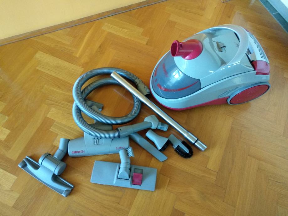 Uz usisavač idu dodaci: plastično nabrano crijevo, teleskopska cijev, 7 vrsti četki za usisavanje: četka, četkica za radijatore, cijev za čišćenje kuztova, mali nastavak za kauč, staze i manje tepihe, univerzalna široka četka s mogućnosti uvlačenja četke ako usisavate pločice, Joker četka i Turbo četka. Korištenje svake opisano je u uputstvima koja smo također sačuvali.