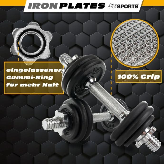 Ne samo da ovaj set bučica izuzetno štedi prostor i prenosiv je, također omogućuje ciljani trening mišića za cijelo tijelo. Sa ScSPORTS® setom bučica možete učinkovito ojačati mišiće ruku, ramena, prsa, stražnjice i nogu kroz vježbe kao što su bočna dizanja, pregibi za biceps i iskoraci.