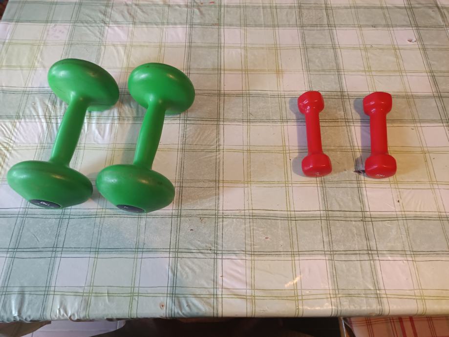 Prodajem bučice za trening, zelena 3 kg i crvene od 1 kg obje za 30 eura