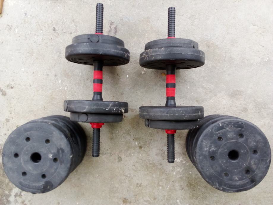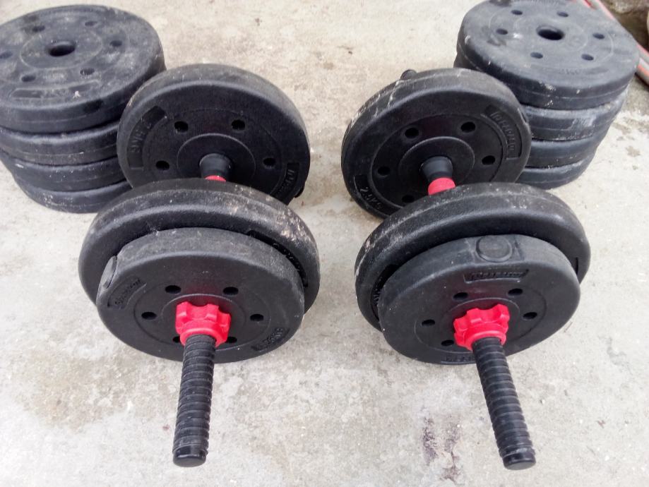 Dvi Šipke Sa Navojem i Utegovi od 3 kg osam komada od 2,5 kg četri komada i od 1,5 kg četri komada