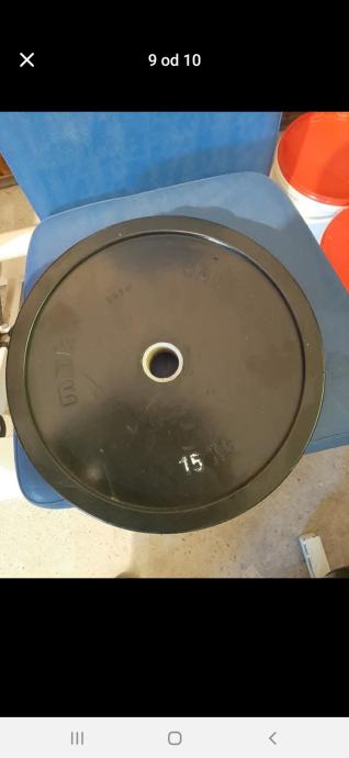 Gumirani utezi rupa 30mm ploče 6×15,2×2.5kg ukupno 95kg. Moguća zamjena za razno!