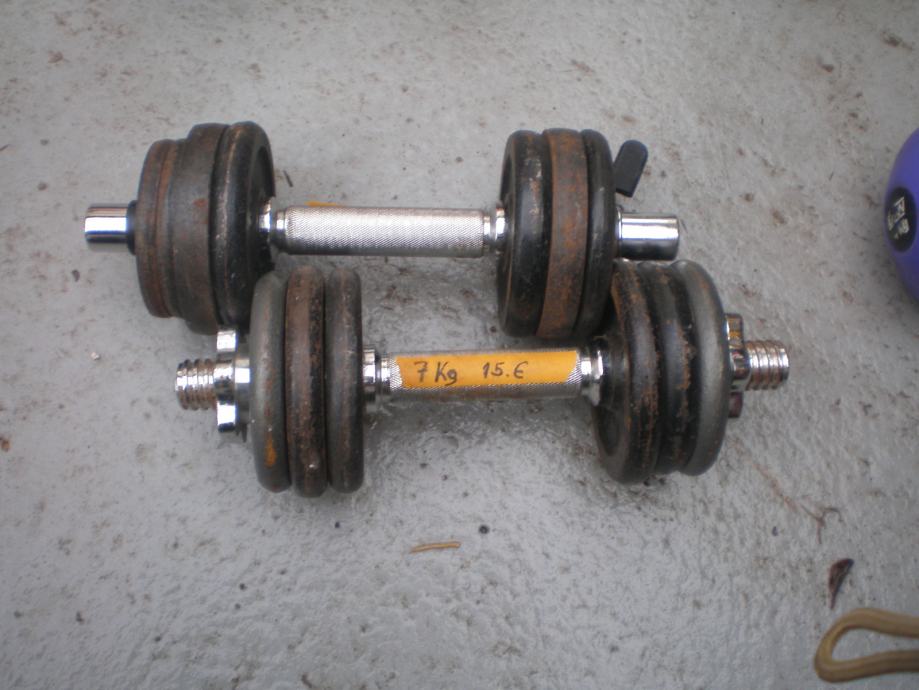 Prodajem dobre kvalitetne utege obe šipke 15kg cjena 30e