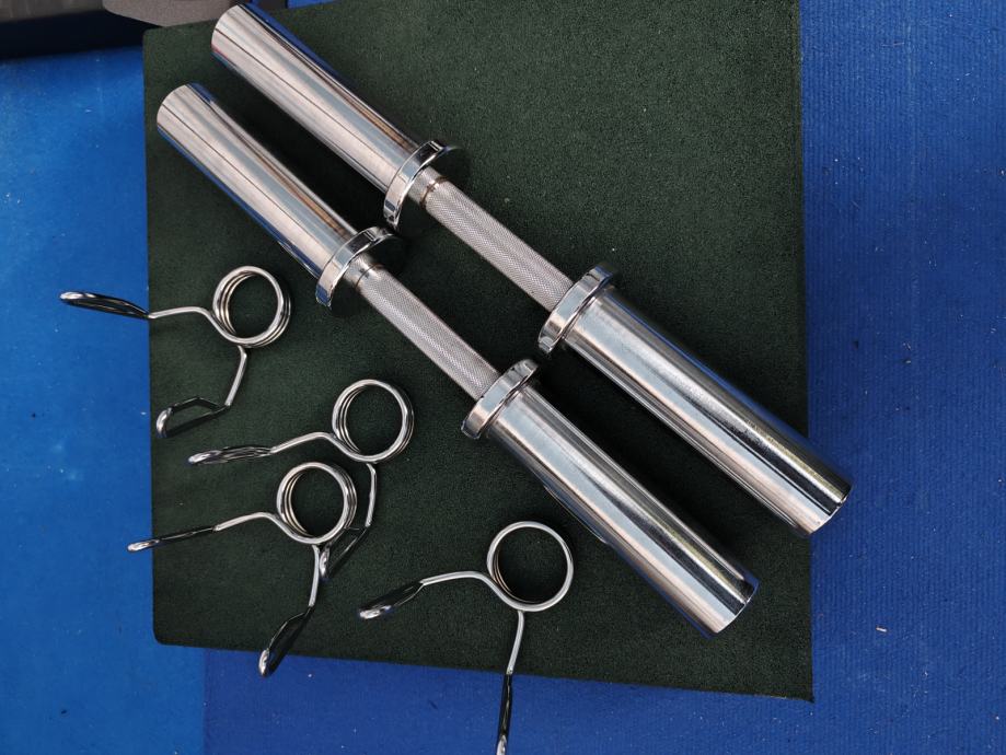 Prodajem par olimpijskih jednoručnih šipki zajedno sa dva para osigurača za njih.
