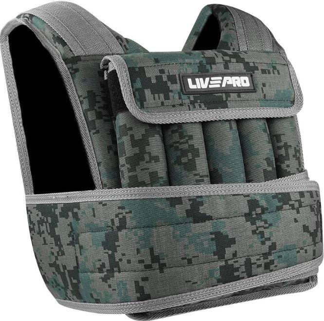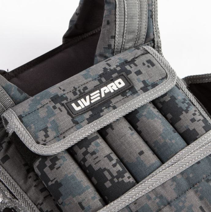 Pancirka s utezima sa 10 utega od 2 kg izrađena od jakog materijala. Izvrsna za sve vrste funkcionalnog treninga, kao i za trčanje, fitness vježbe, ... Po potrebi se pričvrsti trakama uz tijelo. Težina je ravnomjerno raspoređena sprijeda i straga.Moguće uklanjanje / dodavanje težine prema potrebi.Viša kvaliteta i udobnost LIVEPROZatvaranje uz pomoć velcro traka.10 utega od 2 kgBoja: vojna maskirna