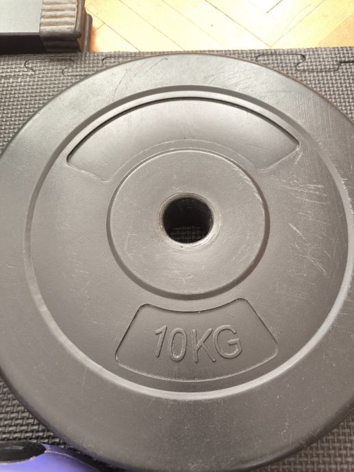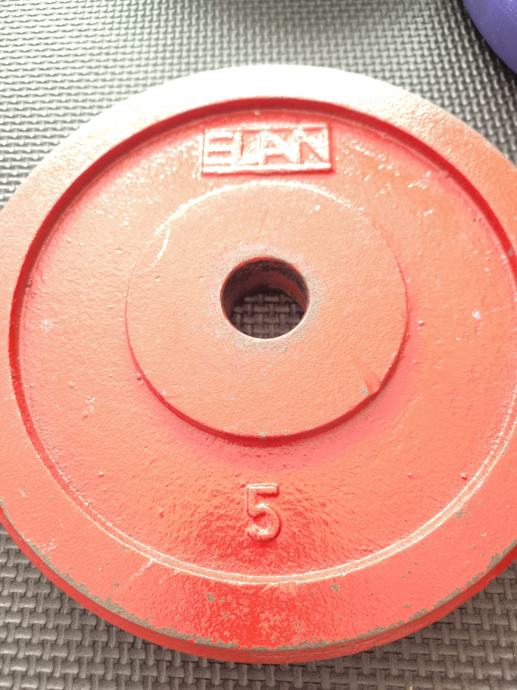 Prodajem rabljene pločaste utege različitih težina i boja idealne za kućni trening. Set uključuje utege u sivoj, crvenoj i ljubičastoj boji, pogodne za razne vježbe snage, 6x10kg + 6x5kg. Promjer rupa za 28mm šipke