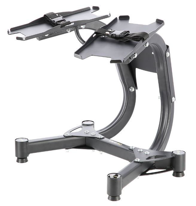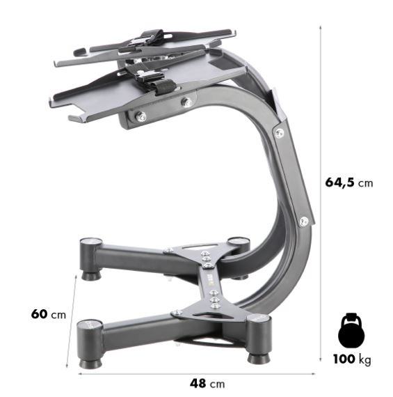 Snažan stalak za podesive bučice koji može držati 2 x 50 kg. Stalak ima novi ergonomski dizajn. Preporučamo da utege ne stavljate na pod zbog velikog pritiska na leđa prilikom podizanja.Uteži nisu uključeni, prodaju se zasebno.Materijal: čelikDimenzije: 60 x 64,5 x 48 cmTežina: 16 kgDopuštena težina: 100 kg
