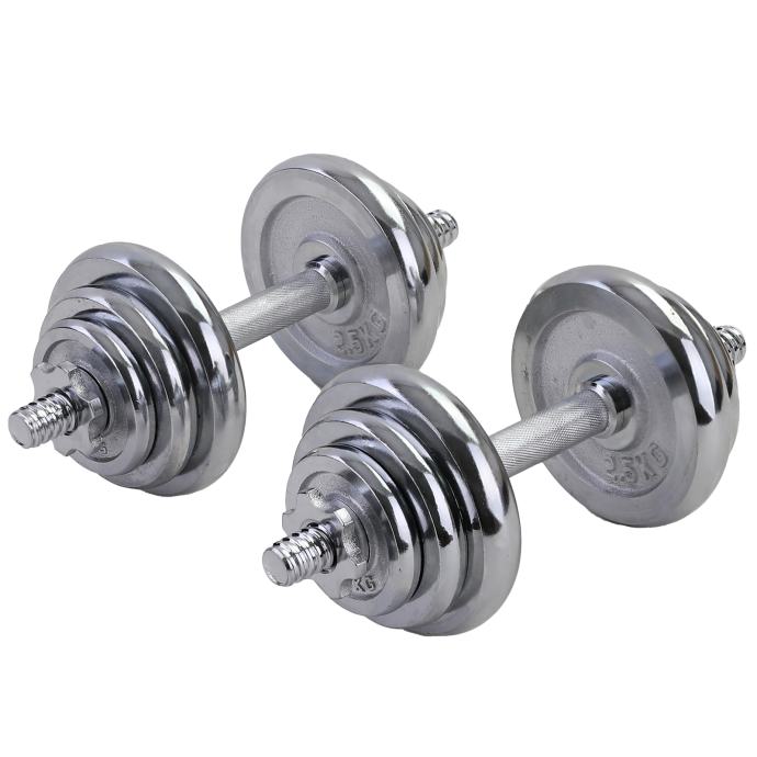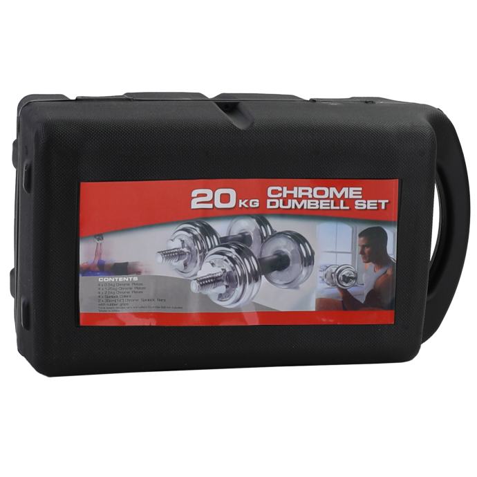Profesionalni set utega s bučicama od 20 kg, kromiran i od lijevanog željeza