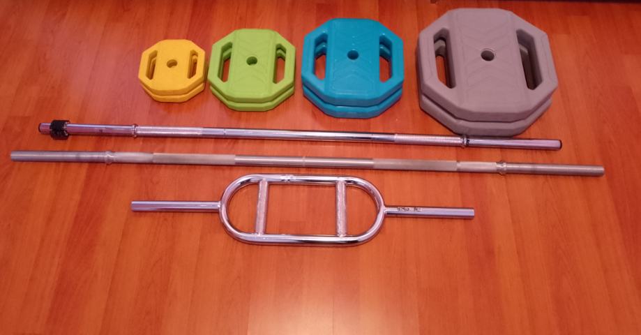 Prodajem set utega 40 kg, malo korišten, sa dvije ravne šipke i triceps šipkom. U kompletu sve za 100 eur. Osobno preuzimanje.Kontakt u njuškalo inbox.