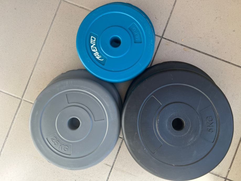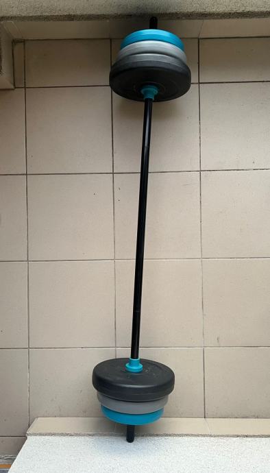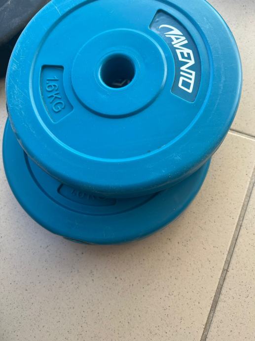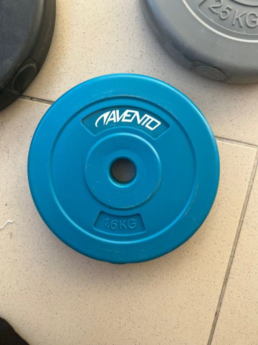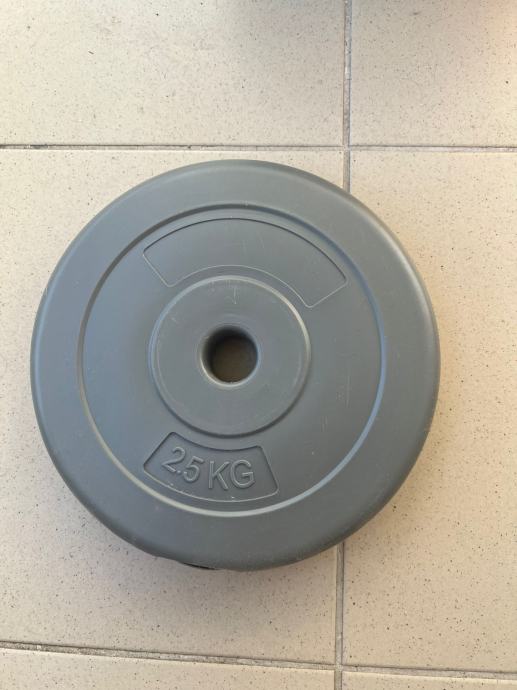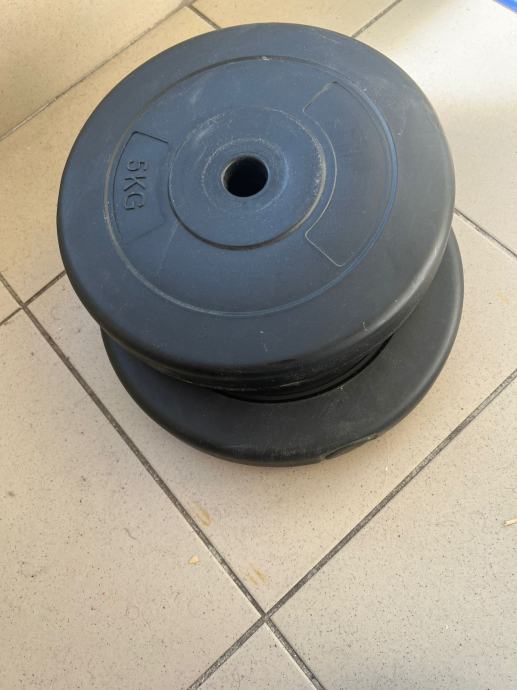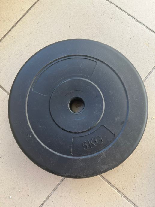 Set sadrzi: 2x5kg, 2x2.5kg, 2x1.6kg, sipka 2kg