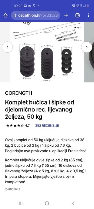 Set utega iz decathlona, 50 kg, minimalno korišteni